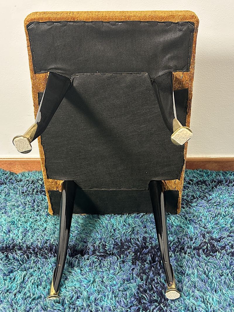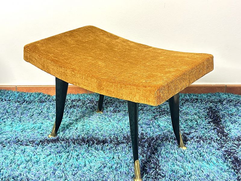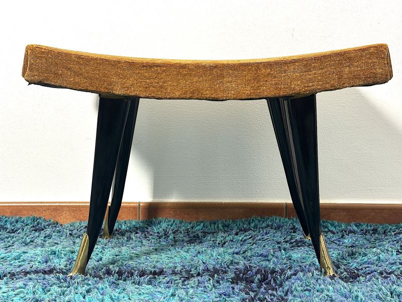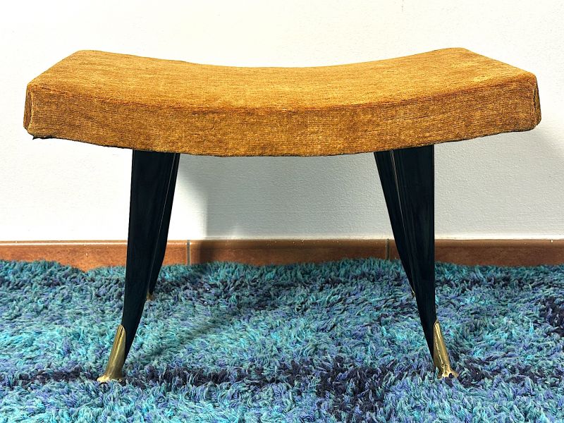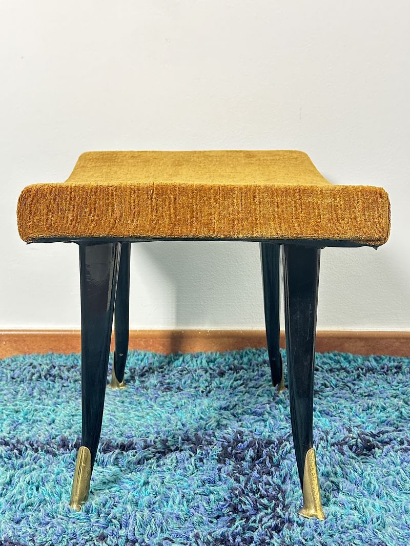Sgabello poggia piedi Vintage originale Anni 60 Made in Italy. Lo sgabello poggia piedi è di manifattura Italiana degli Anni 60, completamente restaurato,design leggero e raffinato, perfette per arredare con stile ambienti interni di modernariato capace di aggiungere carattere ed eleganza a qualsiasi ambiente. Il design è caratterizzato da un fine telaio affusolato, puntali in ottone. CONDIZIONI PERFETTE Misure:Altezza cm 35-Larghezza cm 51-Profondità cm 33-
