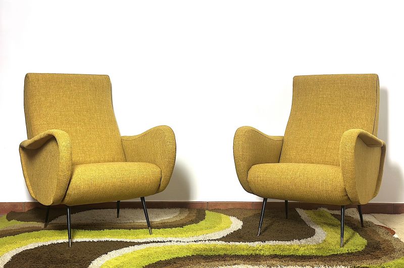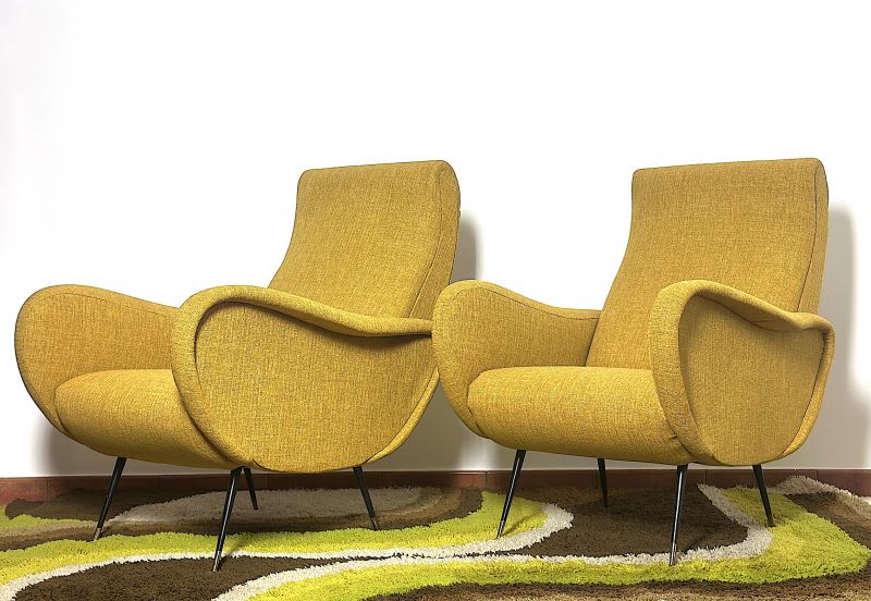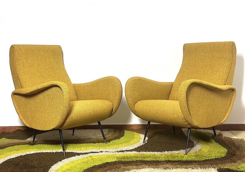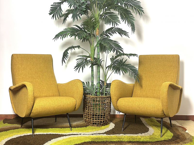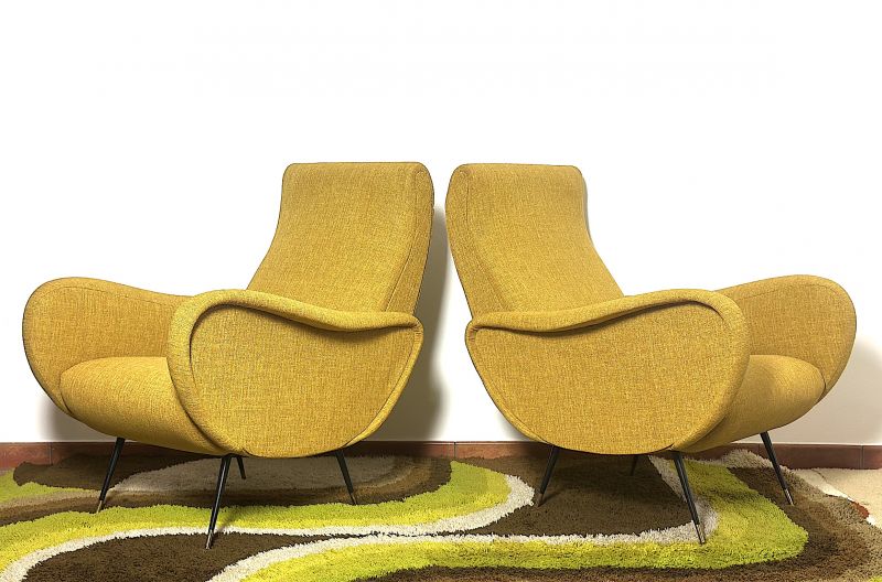 Coppia di Poltrone  LADY  Lt.Yellow Anni 50 Design Attribuito Marco Zanuso Made in Italy