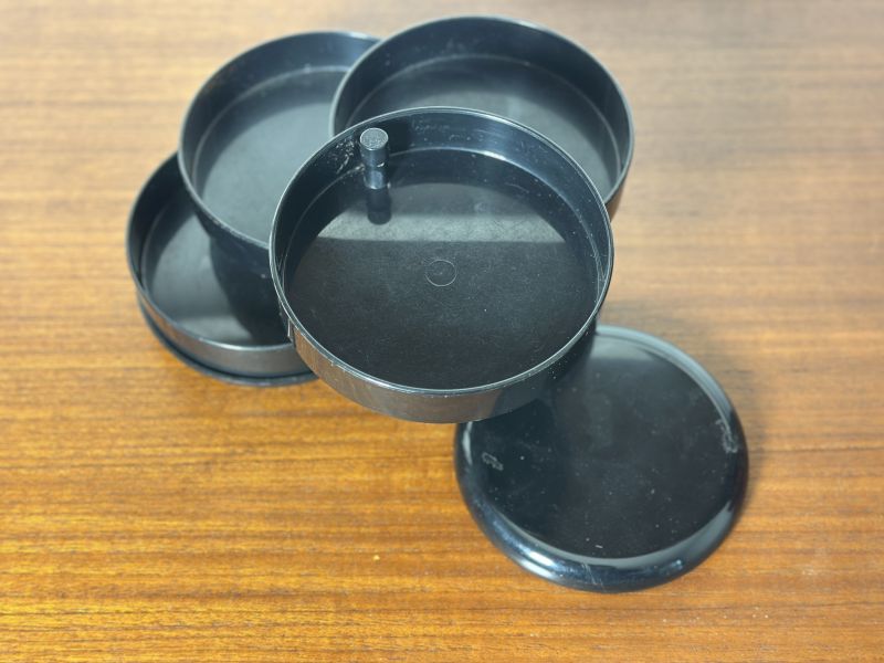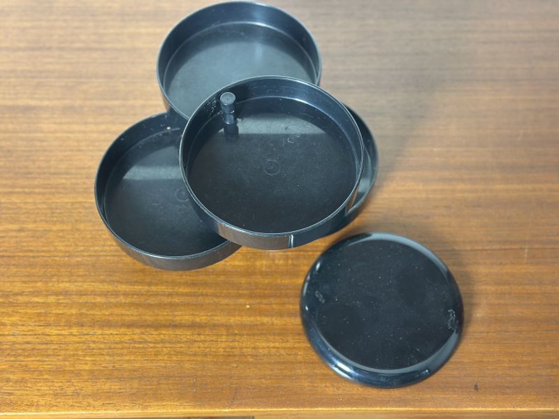Splendido organizer da scrivania girevole Multiplor, progettato da Rino Pirovano per l'azienda italiana Rexite nel 1977. È un pezzo di design italiano iconico, noto per la sua funzionalità e il suo stile Mid-Century Modern. L'organizer presenta cassetti rotanti che possono essere aperti o chiusi per occupare uno spazio minimo sulla scrivania. Realizzato in polimero tecnico e acciaio di colore Nero CONDIZIONI PERFETTE Misure:Altezza cm 13 -Larghezzacm 13