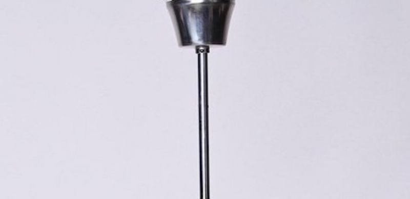 Lampadario vintage in vetro opalino e metallo cromato Targetti Sankey Anni '70 Made in Italy