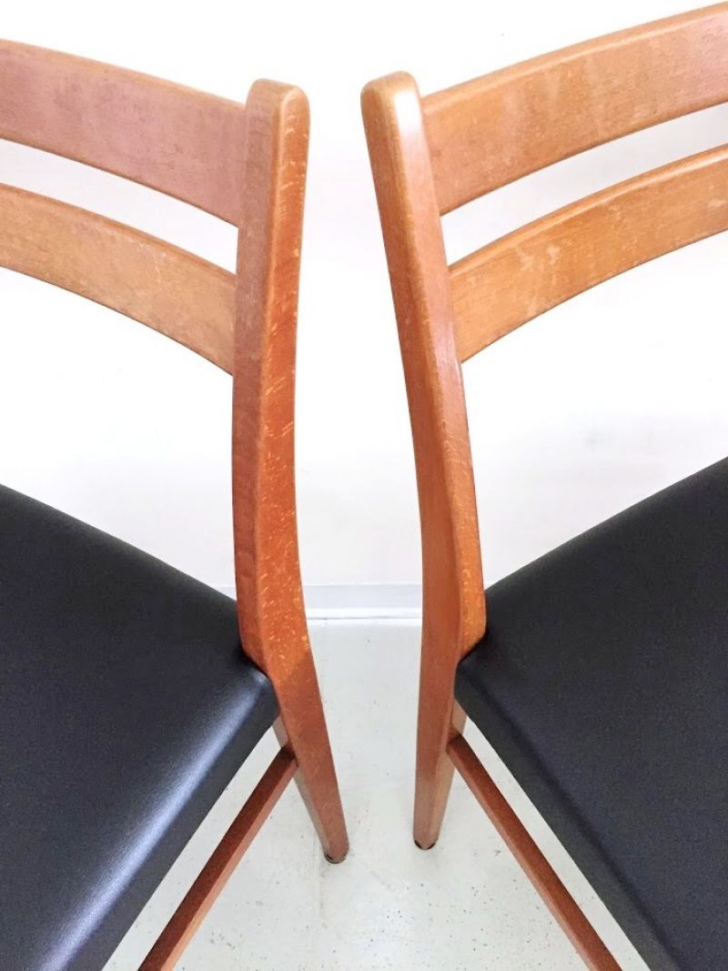 Set di 4 sedie Scandinave Anni 60, struttura in legno massello di Noce Italiano, rivestimento della seduta in Eco Pell di colore Nero, effettuato restauro completo. La struttura è perfettamente stabile. CONDIZIONI PERFETTE Misure:Altezza cm 85-Profondità cm 45-Larghezza cm 44-Seduta cm 43 x 38-Altezza seduta cm 40