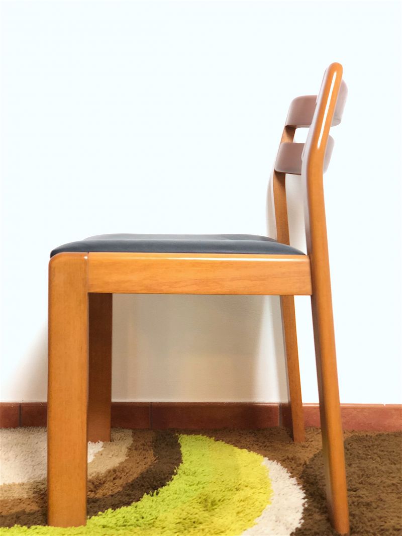 Elegante set di 4 sedie vintage risalenti agli anni 70, realizzate con una solida struttura in legno di noce nazionale e una seduta rivestita in pelle. Il design essenziale riflette l' estetica del modernariato italiano, con linee pulite e materiali di alta qualità. Queste sedie rappresentano un perfetto connubio tra funzionalità e design, rendendole un' aggiunta preziosa per gli appassionati di arredi Vintage. Struttura in legno massello di noce , seduta rivestita in pelle nera. CONDIZIONI PERFETTE Misure: Altezza cm 75 - Larghezza cm 48 - Profondità 50 cm -Seduta cm 44 x 43 Altezza seduta cm 44