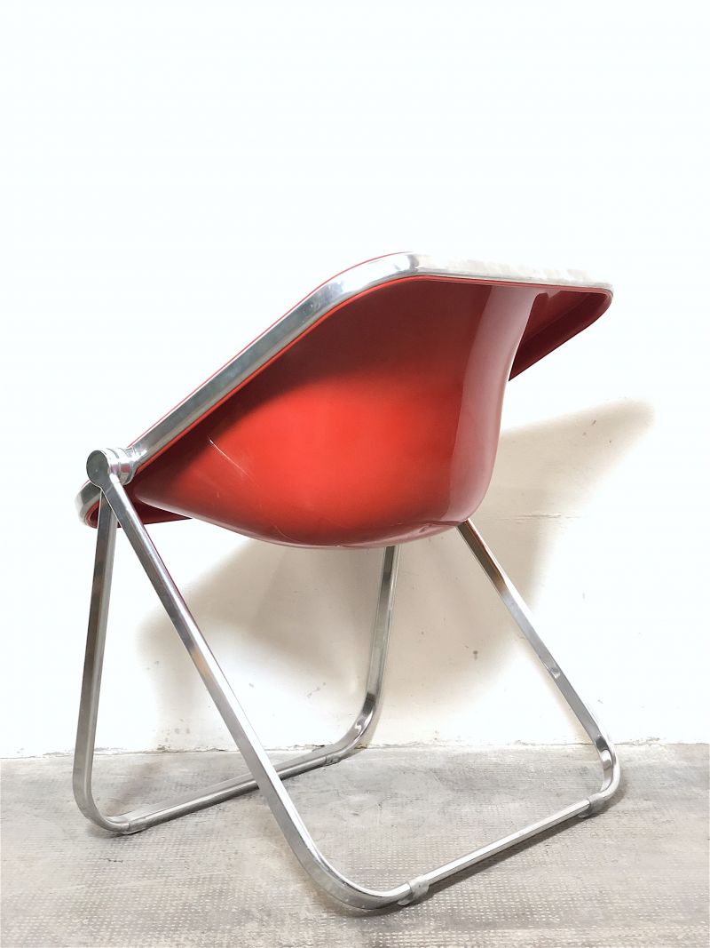 Poltrona PLONA Red Disegnata nel 1970 da Giancarlo Piretti per ANONIMA CASTELLI, PLONA è una poltrona pieghevole e accatastabile, capace di coniugare estetica, funzionalità e comfort grazie al suo design eccezionale. La robusta struttura tubolare è in lega di alluminio inossidabile lucidata,con snodi in lega leggera presso fusa. La scocca è in plexiglass antiurto di colore Rosso, è presente una piccola crepa che non compromette il perfetto funzionamento dello snodo ( vedi foto). CONDIZIONI PERFETTE Misure:Altezza cm 76-Larghezza cm 68-Profondità cm 56-