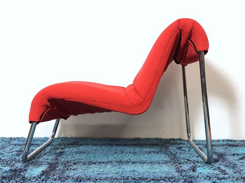 Poltrona Vintage "DUE CAVALLI" La poltrona è di manifattura Italiana prodotto da DRIADE Anni 70 Disegnata da JONATHAN DE PAS & PAOLO LOMAZZI. L’evidente citazione della 2CV Citroën, l’automobile che incarnò per la gioventù europea il mito “on the road”, trasporta questa poltrona nella dimensione del pop. Struttura in tubolare d’acciaio cromato. Telo elastico. Imbottitura in poliuretano con rivestimento trapuntato in tessuto. Repertorio Del Design "GIULIANA GRAMIGNA" CONDIZIONI ECCELLENTI Misure:Altezza cm 80-Larghezza cm 77-Profondità cm 100-Altezza seduta cm 40-Larghezza seduta cm 55 X cm 75