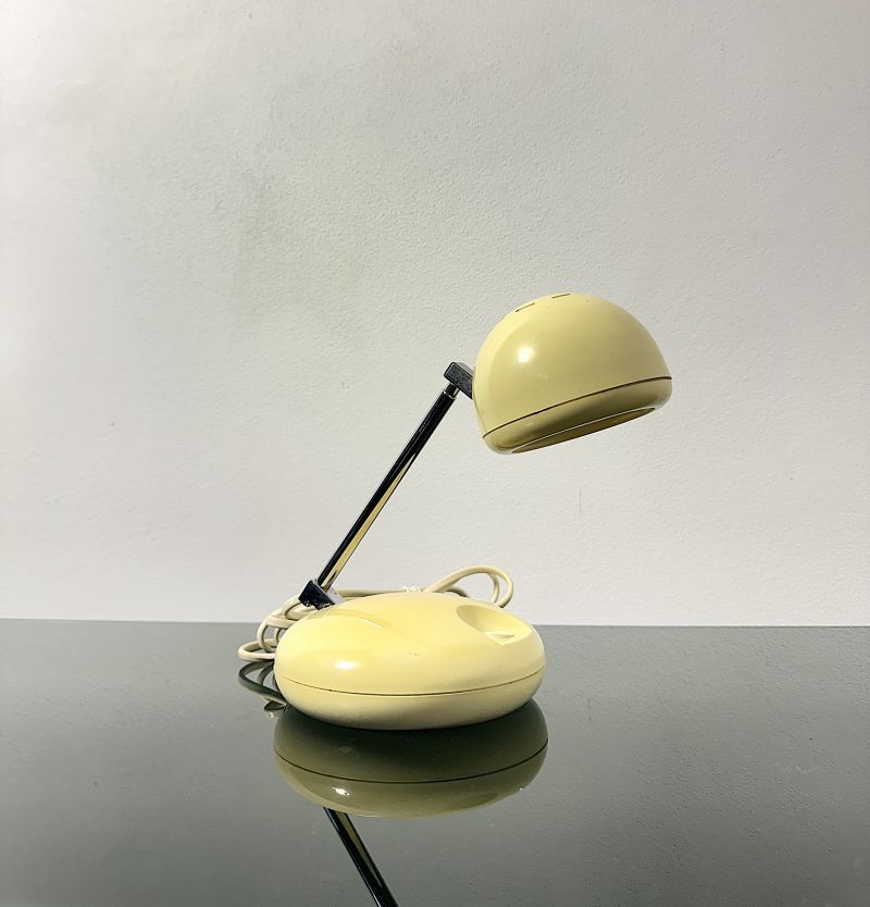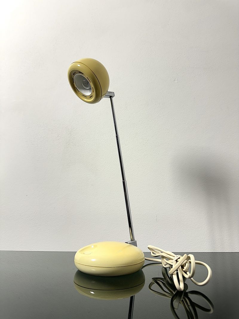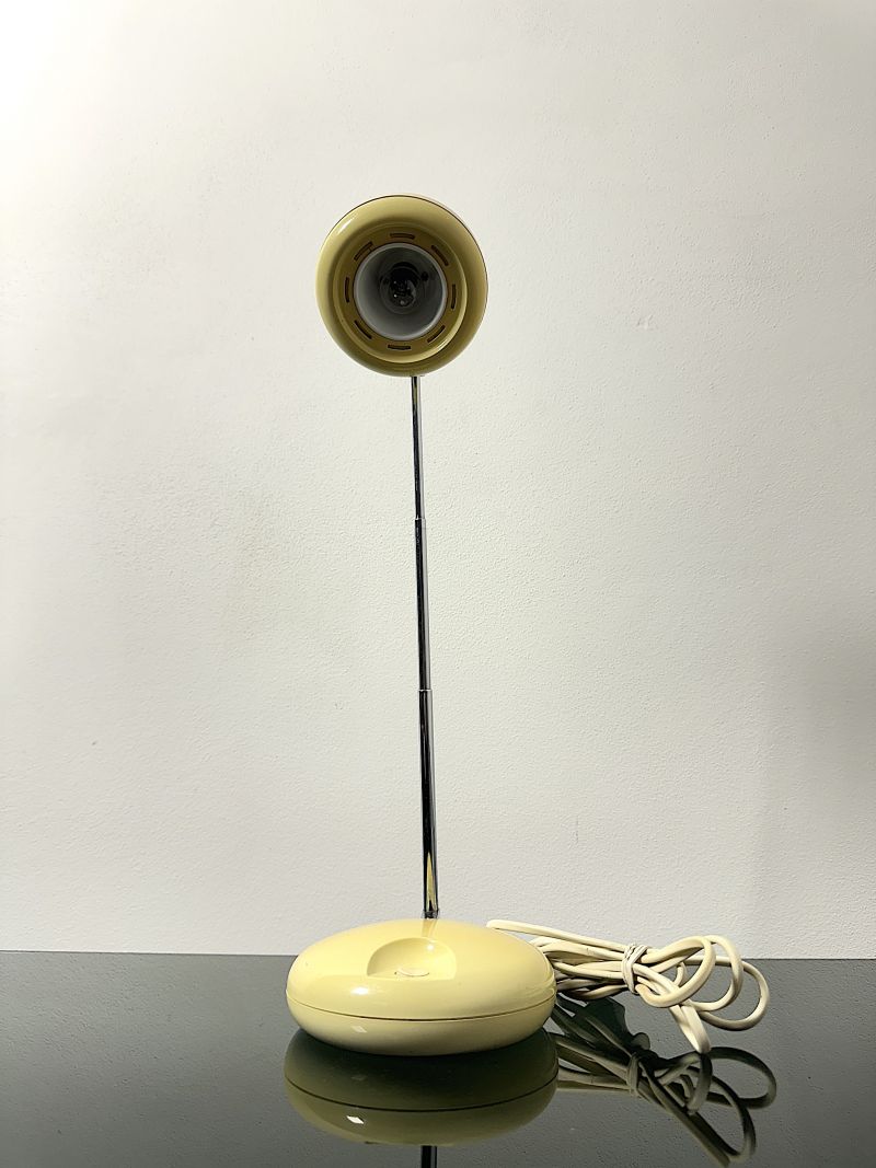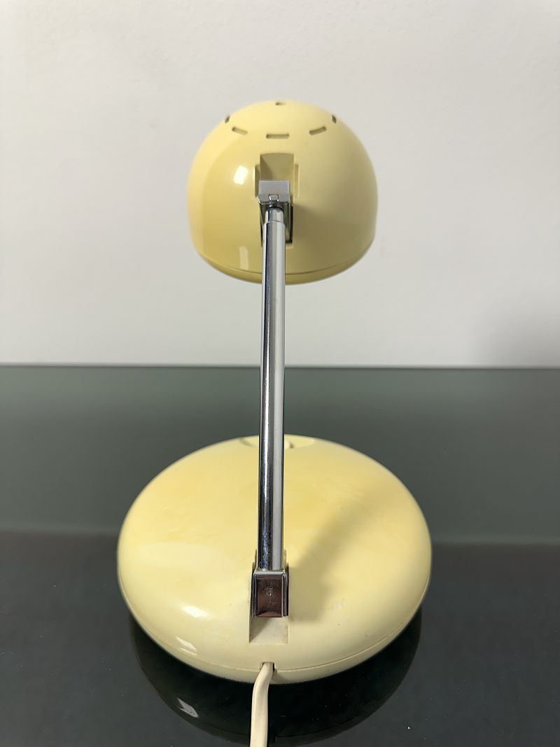 Eichhoff Werke Telescopic Lamp – Space Age 1970s – Made in Germany Iconic table/desk lamp produced by Eichhoff Werke, German manufacturing excellence of the 70s. This model perfectly embodies the Space Age style thanks to its rounded lines and telescopic chromed metal structure. Extendable telescopic arm in chromed metal that allows you to adjust the height and inclination of the light. Base and spherical lampshade in ocher yellow ABS plastic, with chrome finishes. The item is in excellent vintage condition, fully functional. PERFECT CONDITIONS Measurements: Base 14 cm - Height 24-44 cm